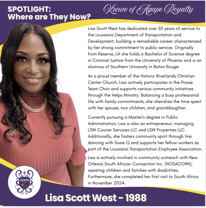 We are delighted to welcome you to the official website of the Krewe of Agape, a proud organization built on the principles of Christian love, charity, and community upliftment. Since our founding in 1980, we have remained committed to celebrating culture, fostering unity, and empowering our community through service and tradition.